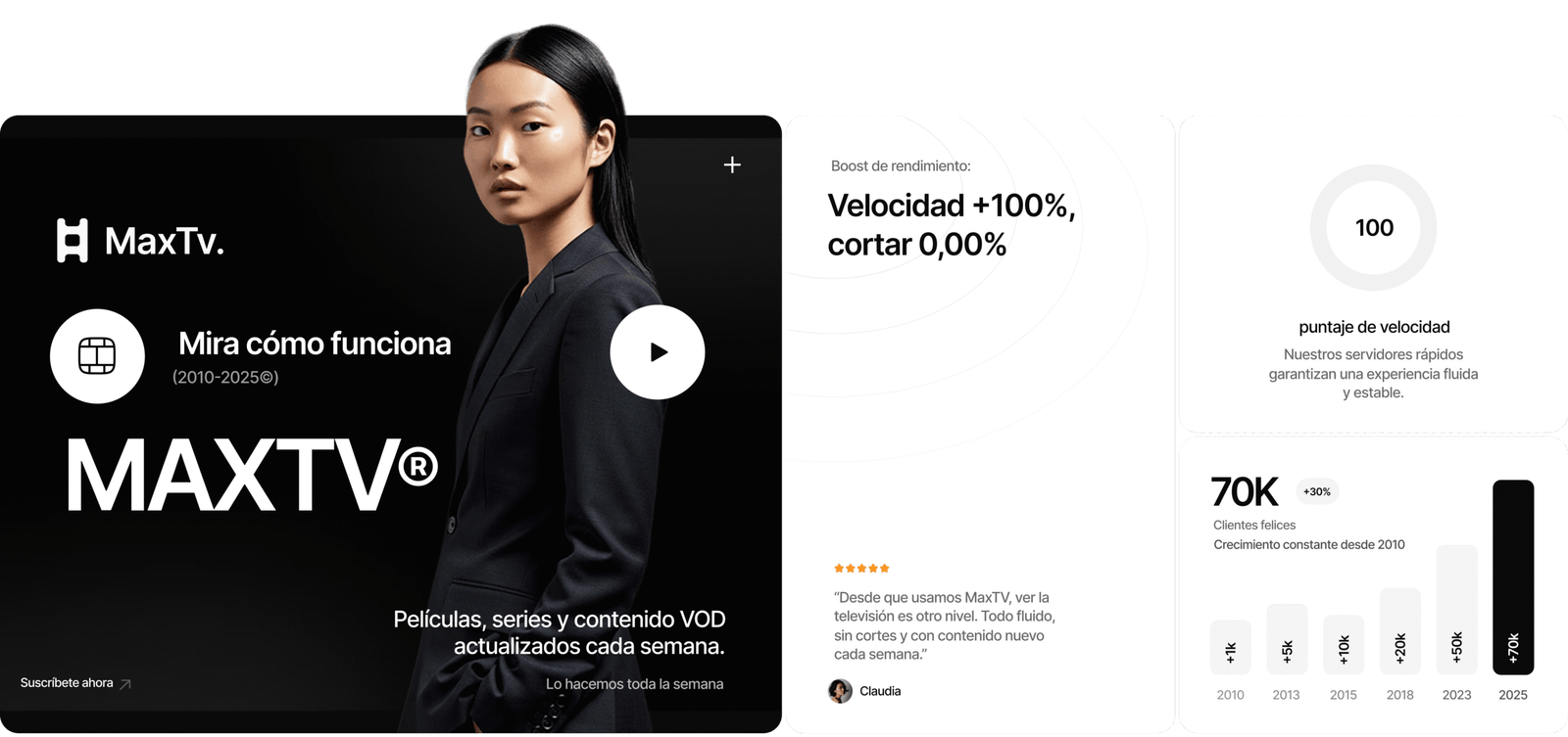 MaxTV no vende solo suscripciones, ofrecemos una experiencia. Nos centramos en calidad, velocidad y contenido actualizado cada semana para que no te pierdas nada.
